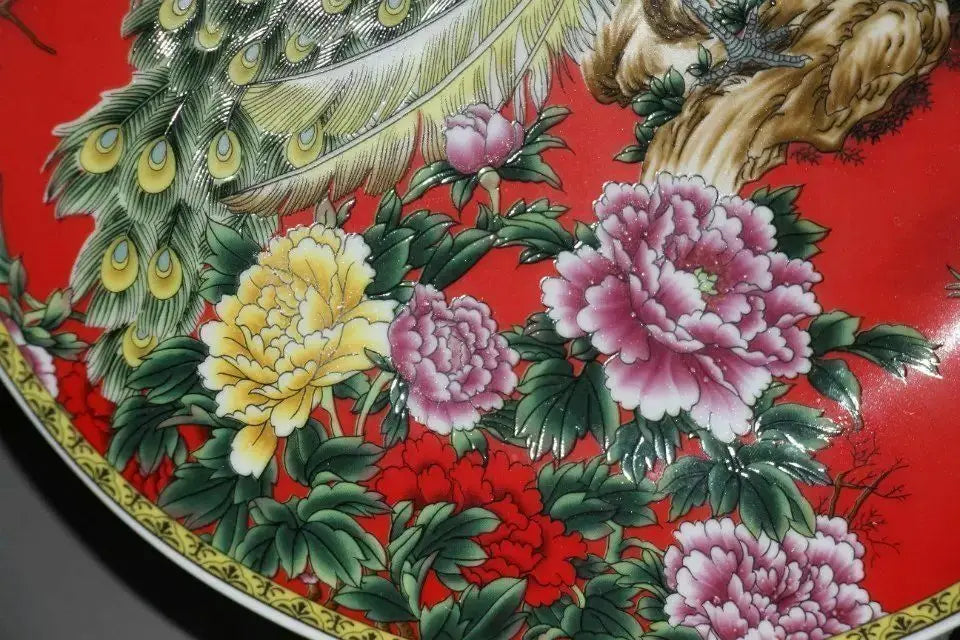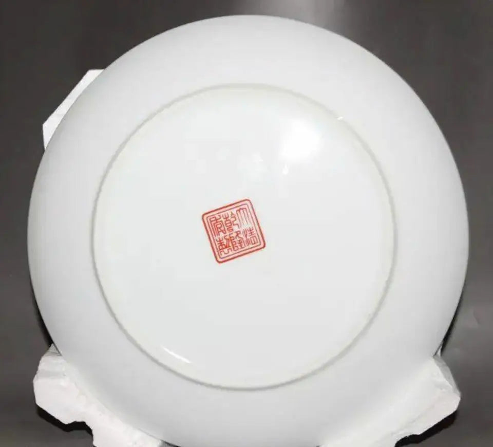 China Rare Famille Rose Porcelain Plate Painted phoenix peony Qianlong mark
